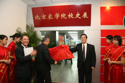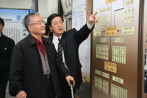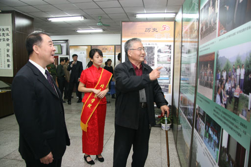 原我校黨委書記張挺出席開展儀式并與院長王有年一同為校史展接牌。