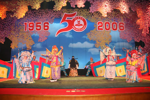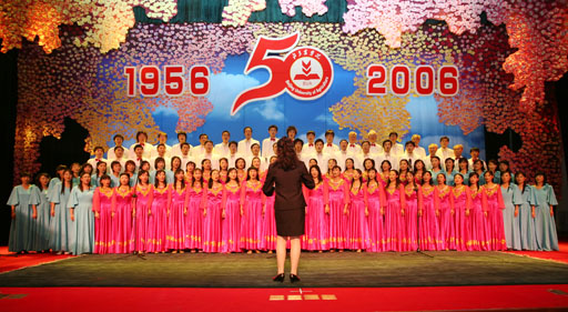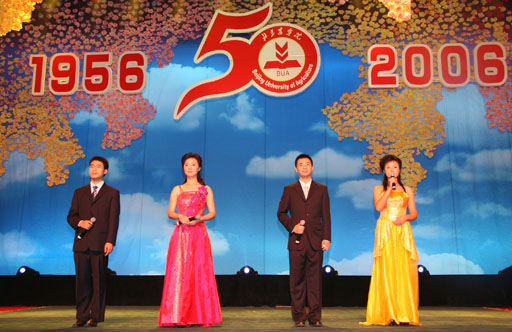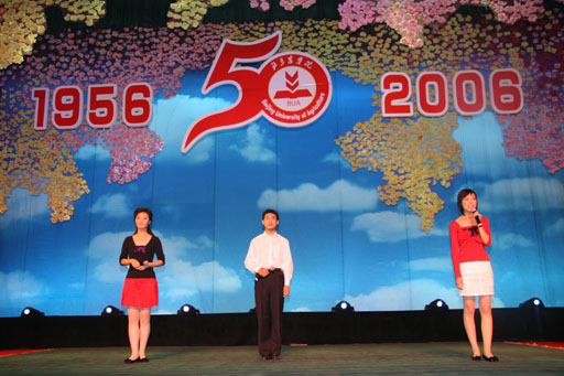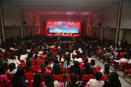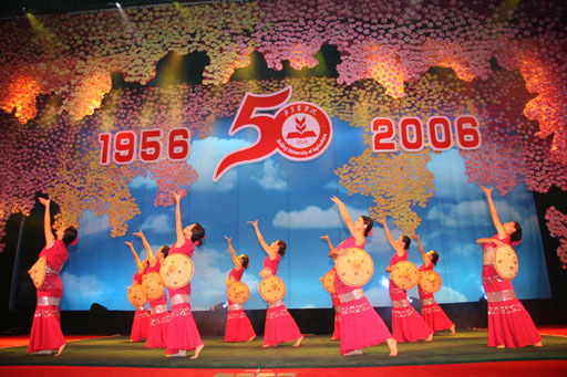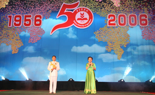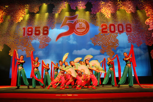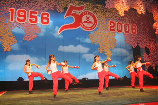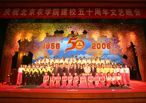 歲月如歌,激情豪邁;歡歌笑語,舞姿飛揚。10月13日晚上,學校大禮堂,洋溢著喜慶熱烈的氛圍,舞臺正上方懸掛著巨大的50周年標識,1956、2006字樣排列標識兩旁,整個舞臺鮮花錦簇,燈光燦爛,在場的觀眾被激動、興奮、喜悅的心情感染著,北京農學院建校五十周年文藝晚會以一曲《節日歡歌》拉開序幕。在場觀眾掌聲雷動,來自社會各界的北京農學院的朋友、畢業回校的校友和在校師生歡聚一堂,祝賀北京農學院五十周年華誕。