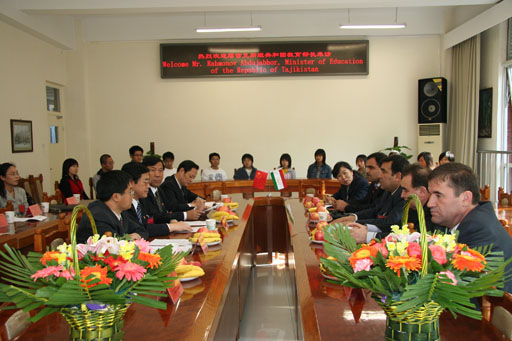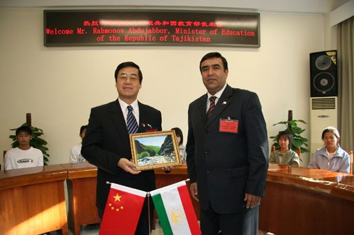 10月19日下午,秋高氣爽,陽(yáng)光明媚,塔吉克斯坦共和國(guó)教育部部長(zhǎng)拉赫莫諾夫?阿布杜扎波爾(Rahmonov Abdujabbor)及隨行人員對(duì)我校進(jìn)行了訪問(wèn)。院長(zhǎng)王有年、副院長(zhǎng)杜曉林熱情接待了阿布杜扎波爾部長(zhǎng)一行。