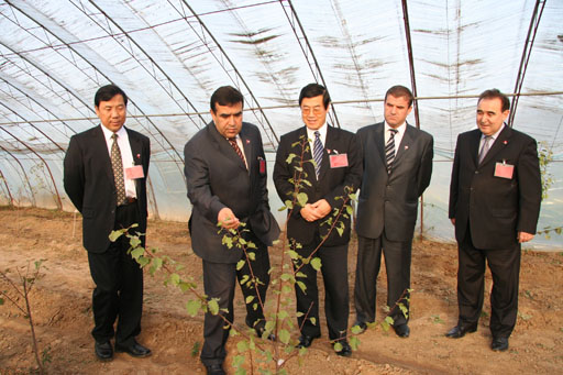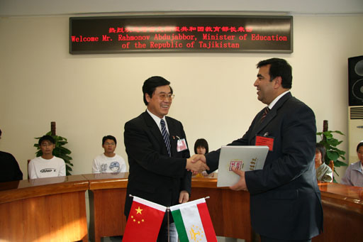 院長(zhǎng)王有年代表近我校8000名師生員工對(duì)到訪的客人表示了熱烈的歡迎。院長(zhǎng)王有年表示我校愿意作為中塔友誼的窗口,積極推動(dòng)師生互訪,接受不同規(guī)格、不同層次的留學(xué)生。他說(shuō),塔吉克斯坦和我校有著長(zhǎng)期堅(jiān)實(shí)的合作基礎(chǔ),塔國(guó)外交部長(zhǎng)、塔國(guó)駐華大使曾經(jīng)訪問(wèn)我校,并在我校栽種下125株代表友誼的杏樹,希望在塔國(guó)的大學(xué)校園里也能栽種下我們的優(yōu)良樹種。