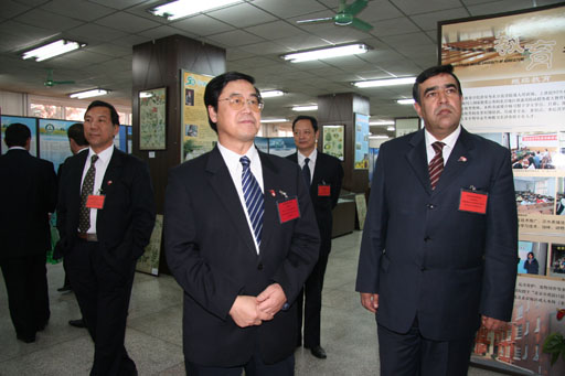 塔吉克斯坦共和國(guó)教育部部長(zhǎng)拉赫莫諾夫?阿布杜扎波爾(Rahmonov Abdujabbor)及隨行人員與院長(zhǎng)王有年、副院長(zhǎng)杜曉林一同參觀了校史展和友誼林。