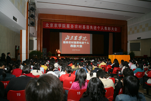 為引導(dǎo)和鼓勵畢業(yè)生去農(nóng)村基層發(fā)揮聰明才智,為建設(shè)社會主義新農(nóng)村做出自己的貢獻,學(xué)校領(lǐng)導(dǎo)經(jīng)研究,決定對我校2006年首批赴延慶縣康莊鎮(zhèn)擔(dān)任“村官”助理的15名畢業(yè)生給予表彰,并給與每人2000元的物質(zhì)獎勵。 4月15日下午3點,服務(wù)農(nóng)村基層先進個人表彰大會在學(xué)校大禮堂舉行。