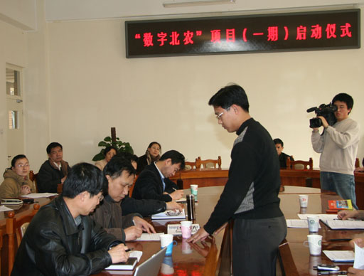 會上,校信息化辦公室主任高明山匯報了“數字北農”(一期)項目情況;東軟公司軟件開發項目經理蘇文革詳細介紹了“數字北農”項目應用系統開發的具體內容及工作安排。
