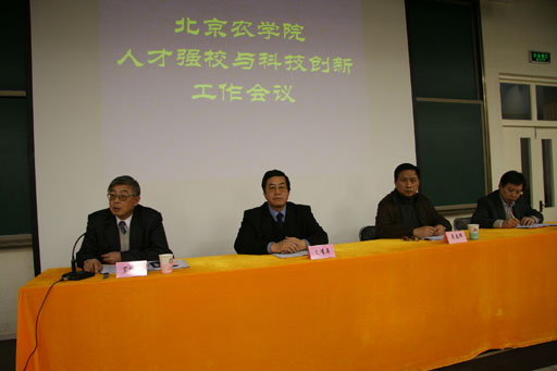 這次大會的主題是以鄧小平理論和“三個代表”重要思想為指導,全面落實以人為本的科學發展觀,認真貫徹中央和北京市人才工作和科技創新工作會議精神,結合我校實際,深入研究我校落實科教興國、人才強國戰略和建設創新型國家的措施,統一思想、提高認識,以高層次人才隊伍建設、科技創新團隊建設和科技創新工作為重點,研討高層次人才引進、使用、考核問題,加大高層次人才引進力度,加強現有人才的培訓提高,制定中青年教師發展資助計劃,推進創新平臺建設。黨委書記孫堯東、副書記王曉霞、副院長杜曉林等校領導出席會議,黨委副書記羅維忠主持會議。