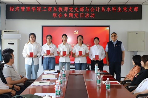 6月27日下午,經濟管理學院工商系教師黨支部與會計系本科生黨支部聯合開展主題黨日活動。校黨委副書記鄭品石出席活動并講授黨課。學院領導班子成員,工商系教師黨支部黨員,會計系本科生黨支部學生黨員、入黨積極分子代表、團員代表等參加活動。會議由會計系本科生黨支部書記吳曈主持。
