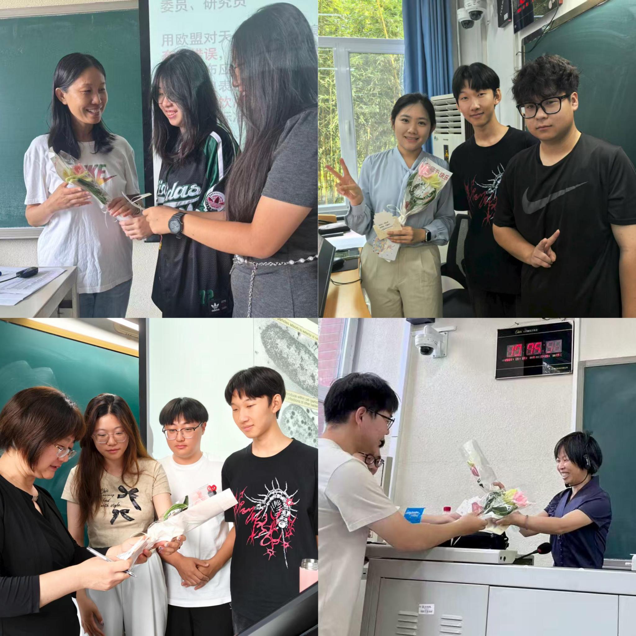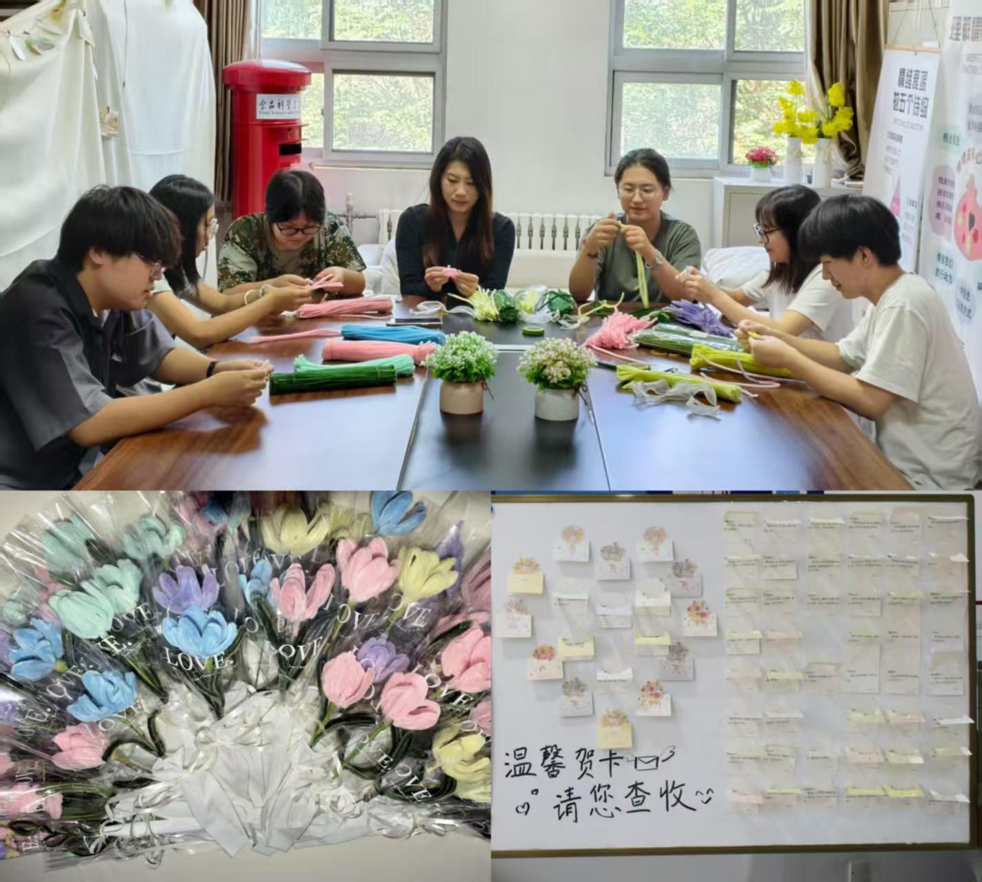 學(xué)院學(xué)子親手制作手工花,祝福墻上貼滿了溫馨賀卡。教師節(jié)當(dāng)天,老師們驚喜地領(lǐng)取DIY花束和專屬賀卡,在花香與祝福中感受節(jié)日的溫暖與喜悅。