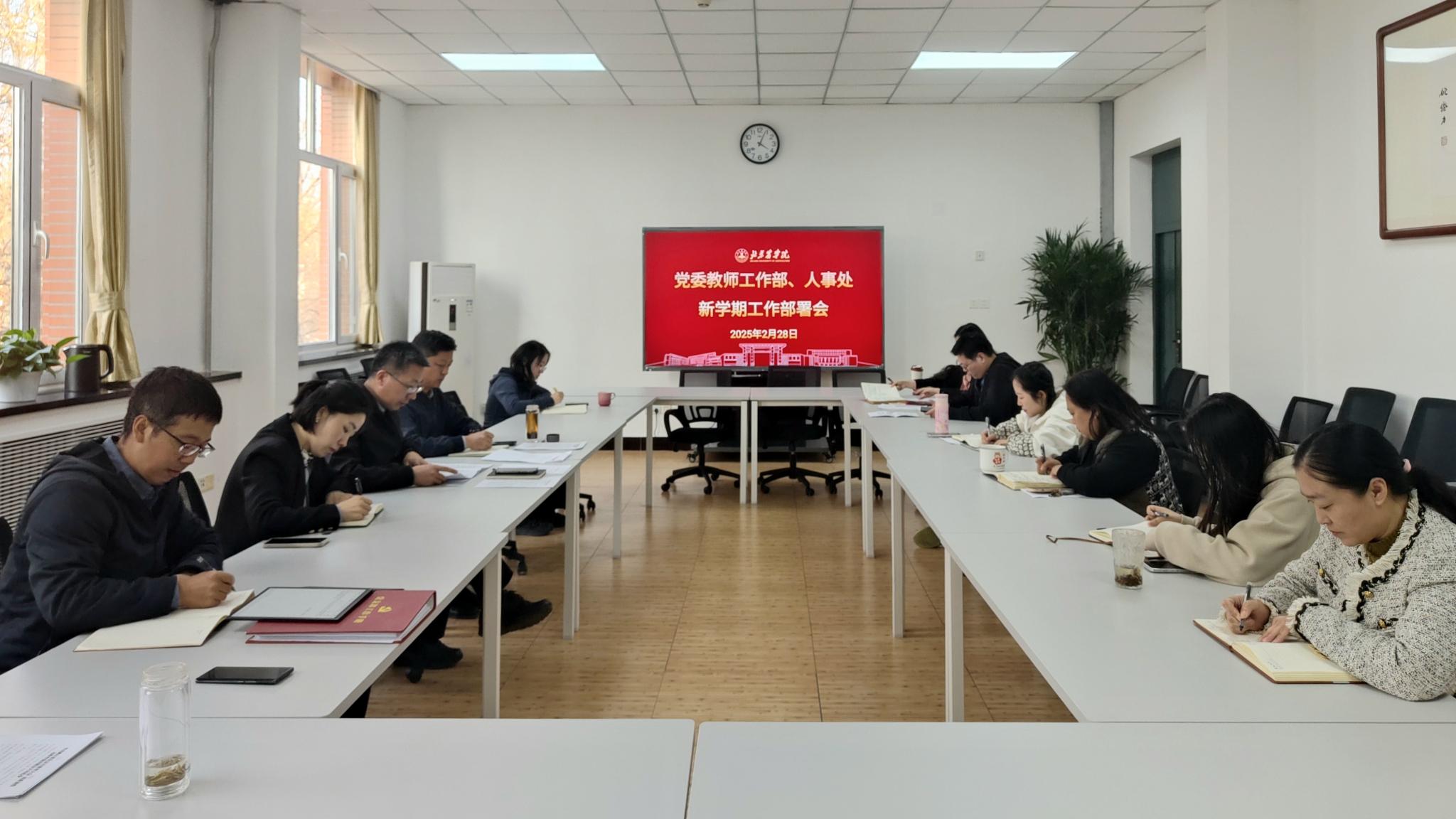 2月28日,黨委教師工作部、人事處召開新學期工作部署會,專題傳達學習學校黨委四屆四次全會和2025年工作部署會精神,研究落實舉措。會議由黨委教師工作部部長、人事處處長劉鐵軍主持。