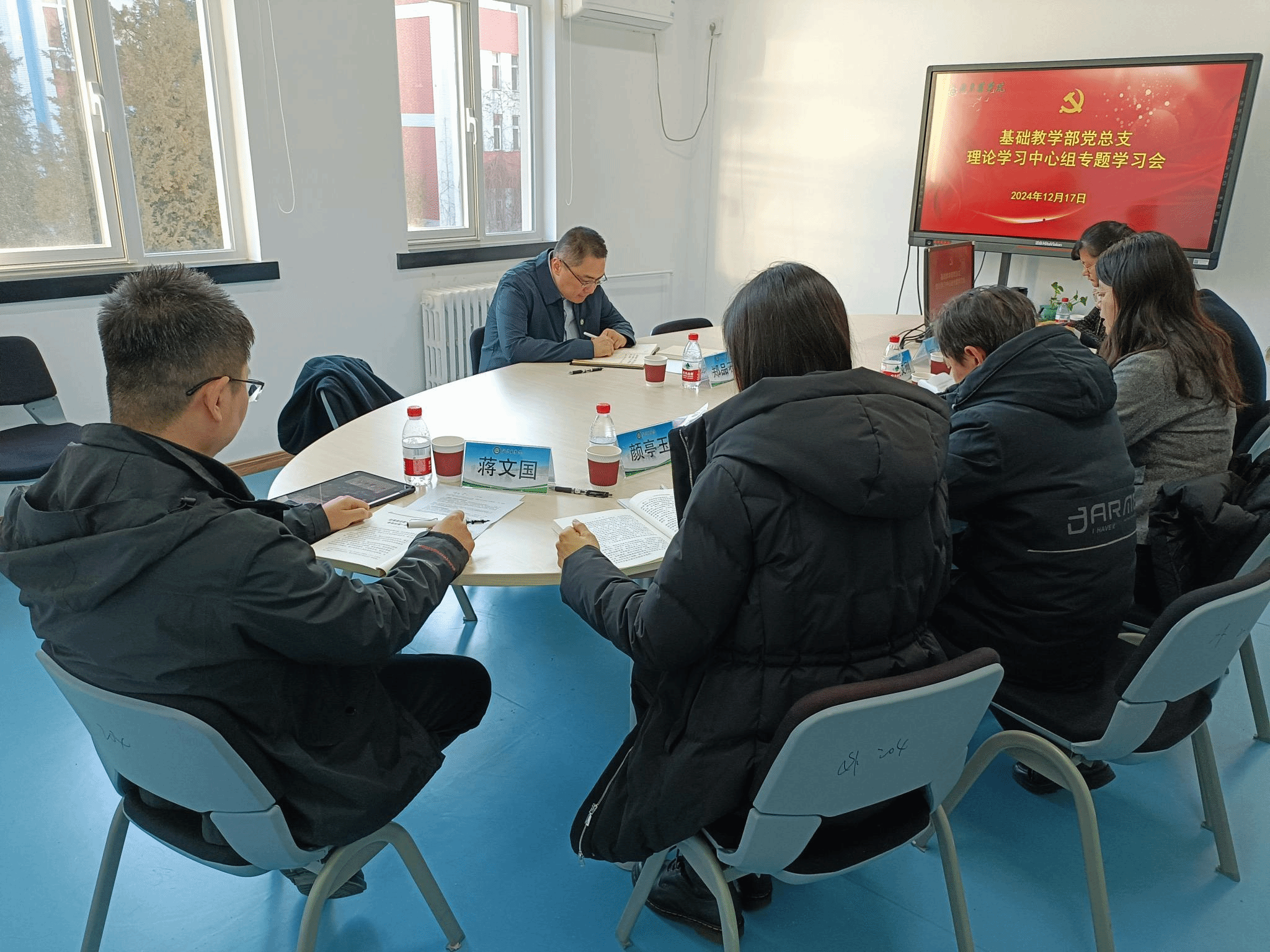 12月17日,基礎教學部黨總支理論學習中心組專題學習習近平同志《論教育》。校黨委副書記鄭品石到會督學指導。會議由黨總支書記牟玉榮主持,全體中心組成員參加會議。