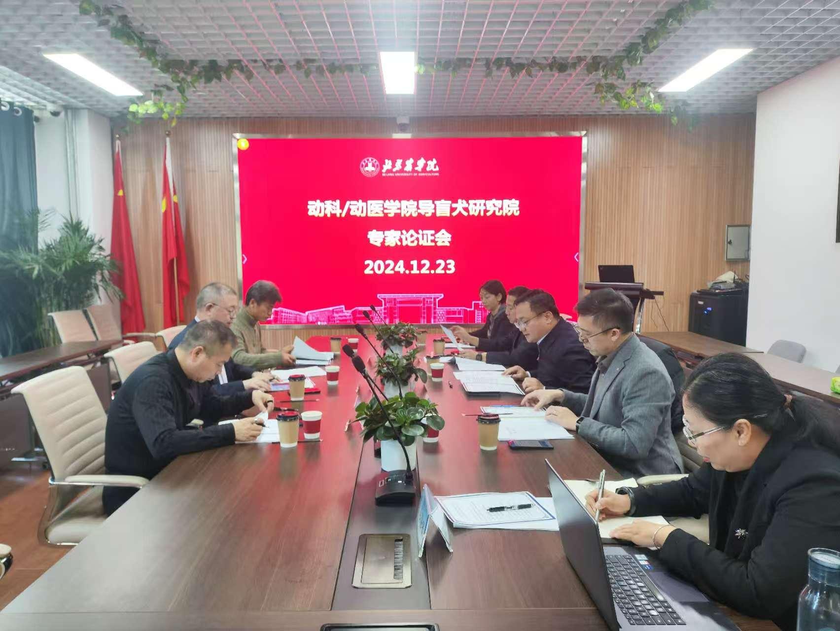 12月23日下午,學院召開導盲犬研究院論證會。中國獸醫協會常務副會長兼秘書長辛盛鵬,中國農業大學動物醫學院教授王九峰,中國獸醫協會副會長、新瑞鵬寵物醫療集團副董事長劉朗出席會議。