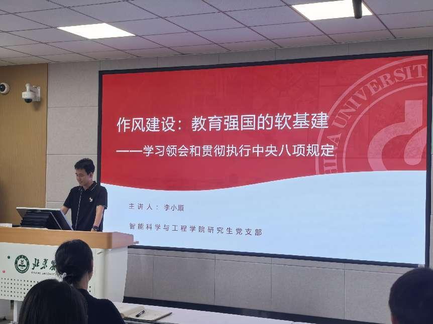 智能學院研究生黨支部書記李小順以作風建設、教育強國的軟基建為切入點,分享了在教育領域和科研領域中黨員需堅守的行為準則。他著重強調了研究生黨員在學術研究中必須嚴格保證學術誠信,堅決杜絕濫用AI技術等可能導致學術作假、資源浪費的行為,研究生黨員更應以身作則,帶頭嚴格遵守學術規范。