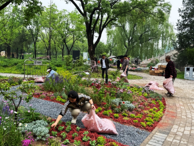 綠意盎然,大地歡歌。4月30日,首都綠化委員會辦公室、北京市委社會工作部、北京廣播電視臺、東城區(qū)人民政府共同舉辦第五屆首都市民花園節(jié)在龍?zhí)吨泻鲿鲩_幕,推動北京花園城市全民共建、共治、共享,讓老百姓走進自己親手打造的專屬花園!本屆花園節(jié)以“你好!花園城市”為主題,邀請廣大市民共享綠意盎然之美。由園林學(xué)院李金蘋、馮麗兩位老師帶隊的兩組作品“永續(xù)綠蔭”“夏日調(diào)色盤”成功入圍。師生于近日如火如荼地投入花園籌備與建設(shè)工作。他們冒雨前行,臉上雖顯疲憊,卻仍堅定不移,分秒必爭,盡全力布置美麗花園。