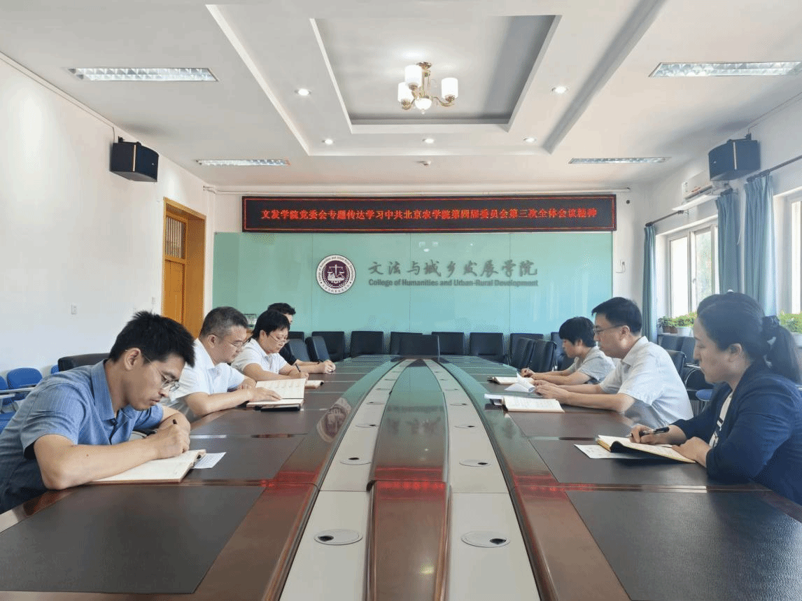 9月2日,文法與城鄉發展學院黨委會專題傳達學習中共北京農學院第四屆委員會第三次全體會議精神。學院黨委書記趙和文主持會議。