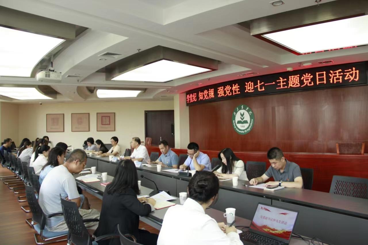 6月27日上午,植物科學技術學院園藝教師1支部和園藝研究生2支部聯合開展“學黨紀、知黨規、強黨性”迎七一主題黨日活動。校黨委副書記仲叢生出席并講話,學校紀委委員閆曉軍、植科學院黨委委員、園藝教師1支部和園藝研究生2支部黨員參會。