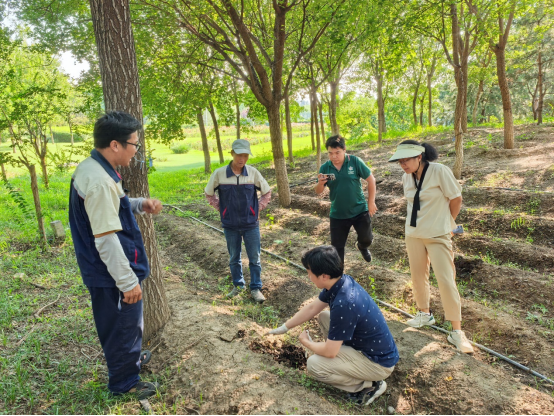 在海淀區(qū)南水北調(diào)團(tuán)城湖公園示范基地,團(tuán)隊(duì)針對(duì)發(fā)現(xiàn)的播種過淺、高溫?zé)葐栴},提出利用園區(qū)修剪碎草覆蓋菌床的解決方案,這一舉措既能有效降溫保濕,又實(shí)現(xiàn)了園林廢棄物的循環(huán)利用,獲得基地管理人員的高度認(rèn)可。