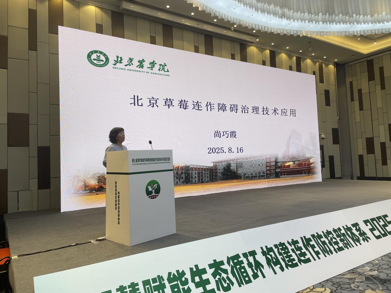 生物與資源環(huán)境學(xué)院尚巧霞教授在大會上做了題為“北京草莓連作障礙治理技術(shù)應(yīng)用”的專題報告,系統(tǒng)介紹了北京市草莓生產(chǎn)情況和連作障礙主要成因、草莓病毒病害檢測及種苗脫毒技術(shù)、草莓有害生物綠色防控及連作障礙綜合治理技術(shù)和成果應(yīng)用,得到了與會專家的高度評價。