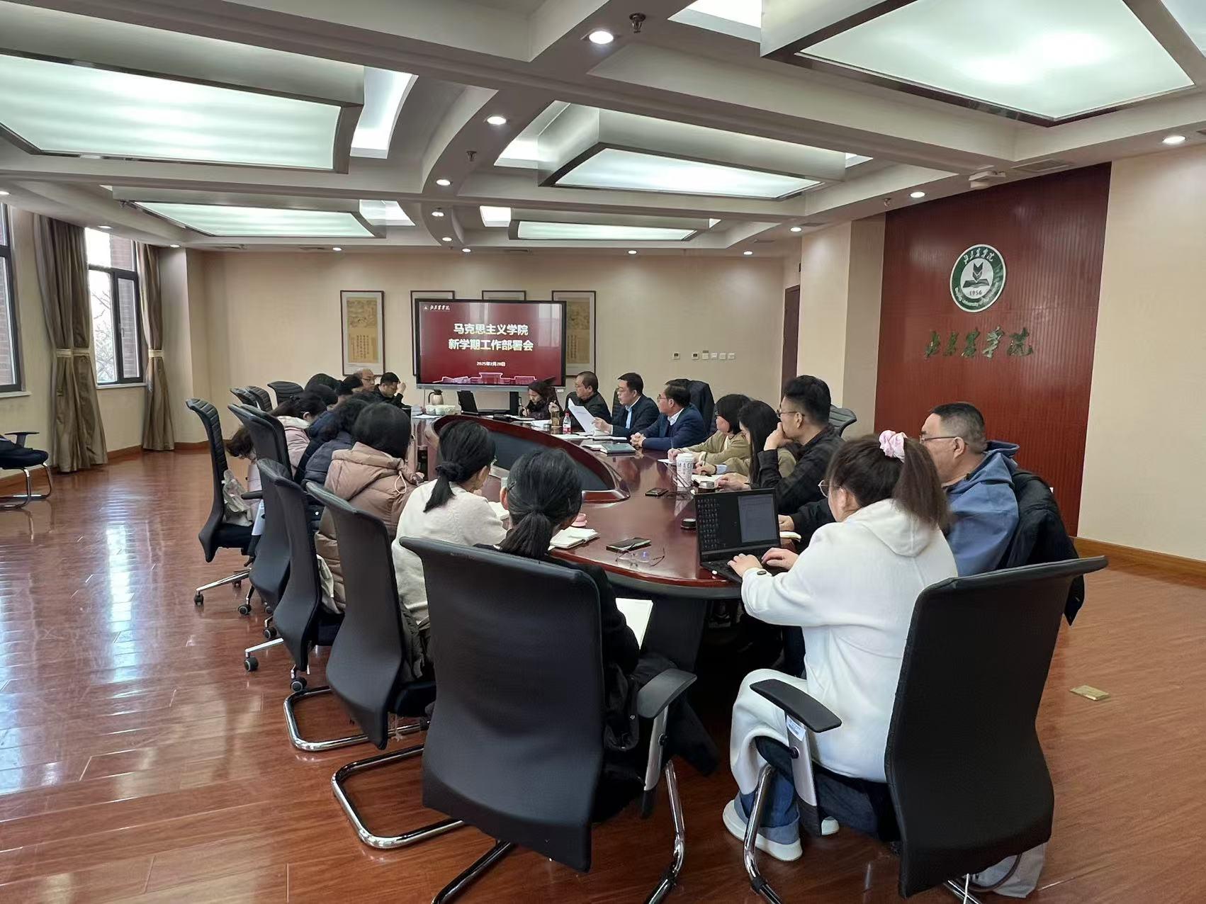 2月28日下午,馬克思主義學院召開新學期工作部署會,傳達學校近期重要會議精神,部署學院2025年重點工作。會議由學院直屬黨支部書記高建偉主持,學院班子成員、全體思政課教師參加會議。
