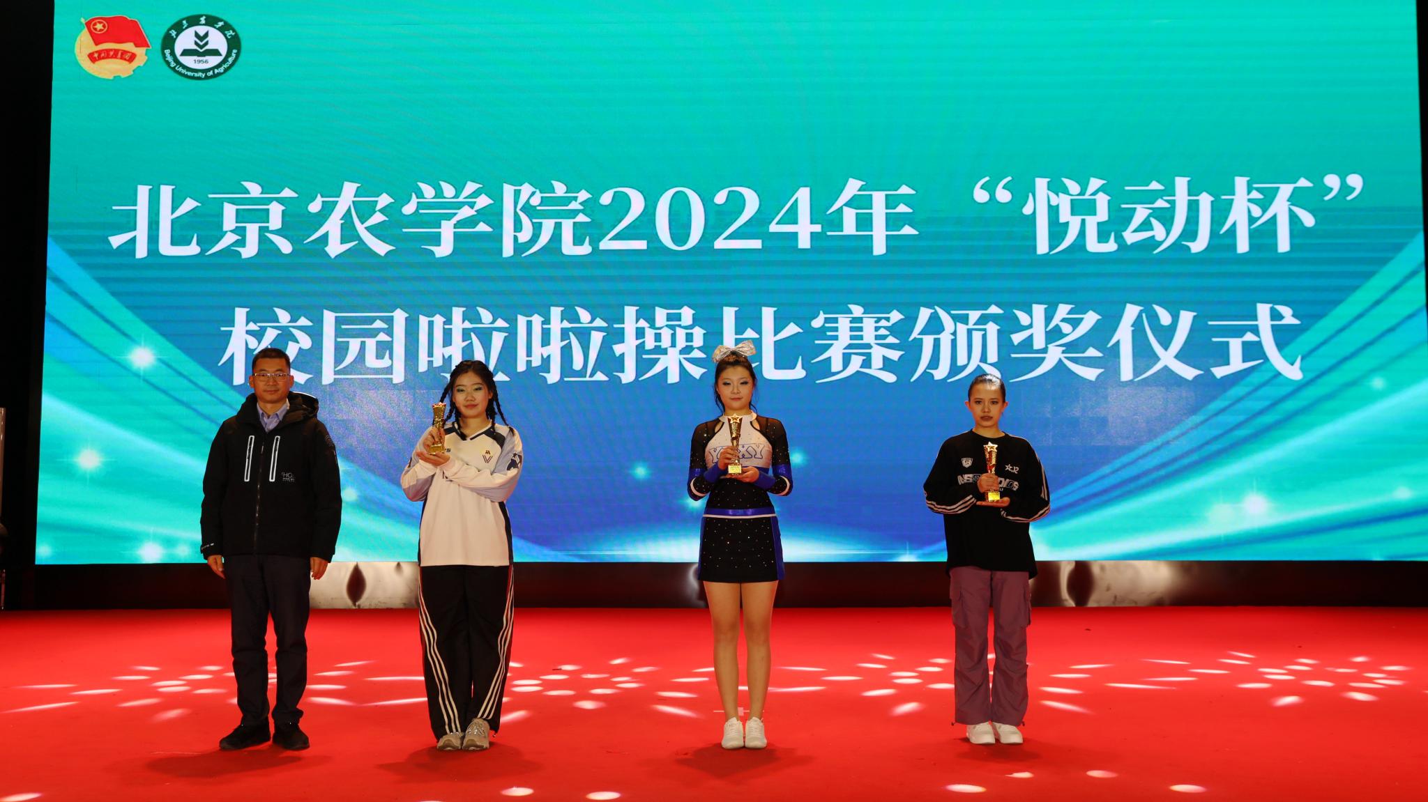 吳君楚、基礎(chǔ)教學(xué)部黨總支書記牟玉榮、基礎(chǔ)教學(xué)部主任楊為民、校團(tuán)委書記張卿分別為花球啦啦操、舞蹈啦啦操及團(tuán)體總分前三名的學(xué)院頒獎(jiǎng)。