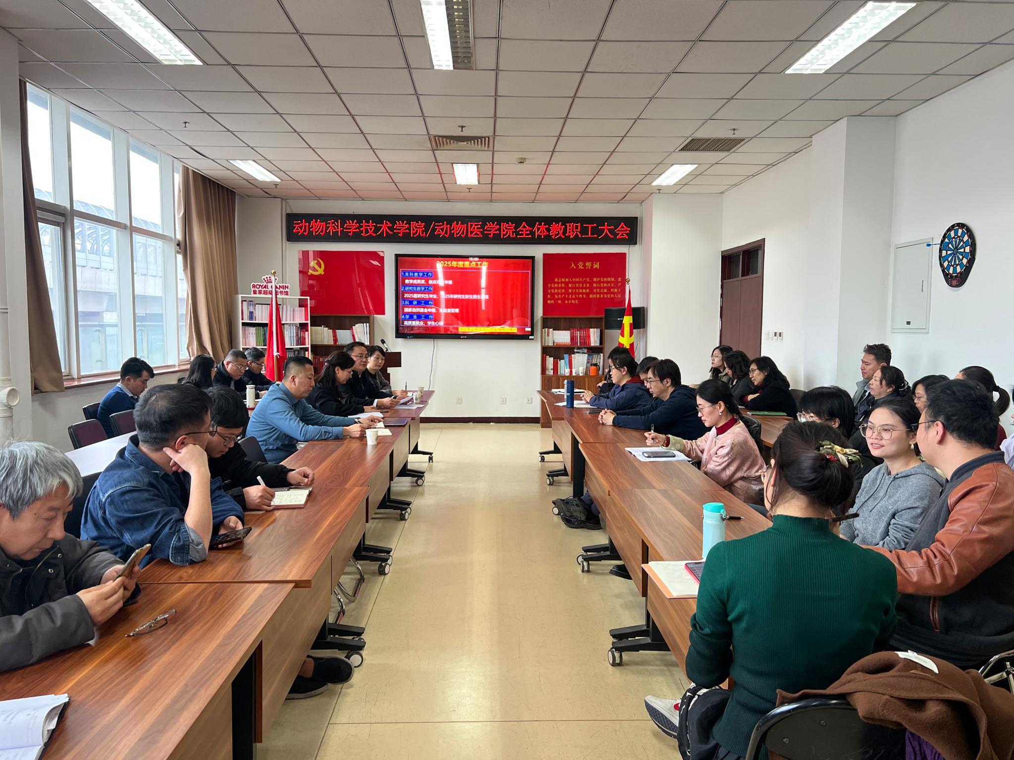3月4日,動物科學技術學院/動物醫學院召開全體教職工大會,傳達學習學校黨委四屆四次全會精神和2025年工作部署會精神,全面部署學院2025年重點工作。會議由學院黨委書記黨登峰主持。