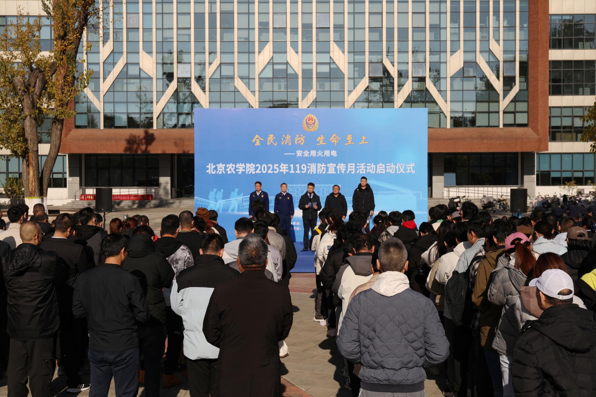 近日,學校安全穩定工作處與昌平消防救援支隊、史各莊街道辦事處共同舉辦2025年“119”消防安全月啟動儀式,并圍繞“全民消防、生命至上——安全用火用電”主題開展豐富多彩的消防安全教育體驗活動。學校黨委常委、副院長張勁柏參加啟動式。