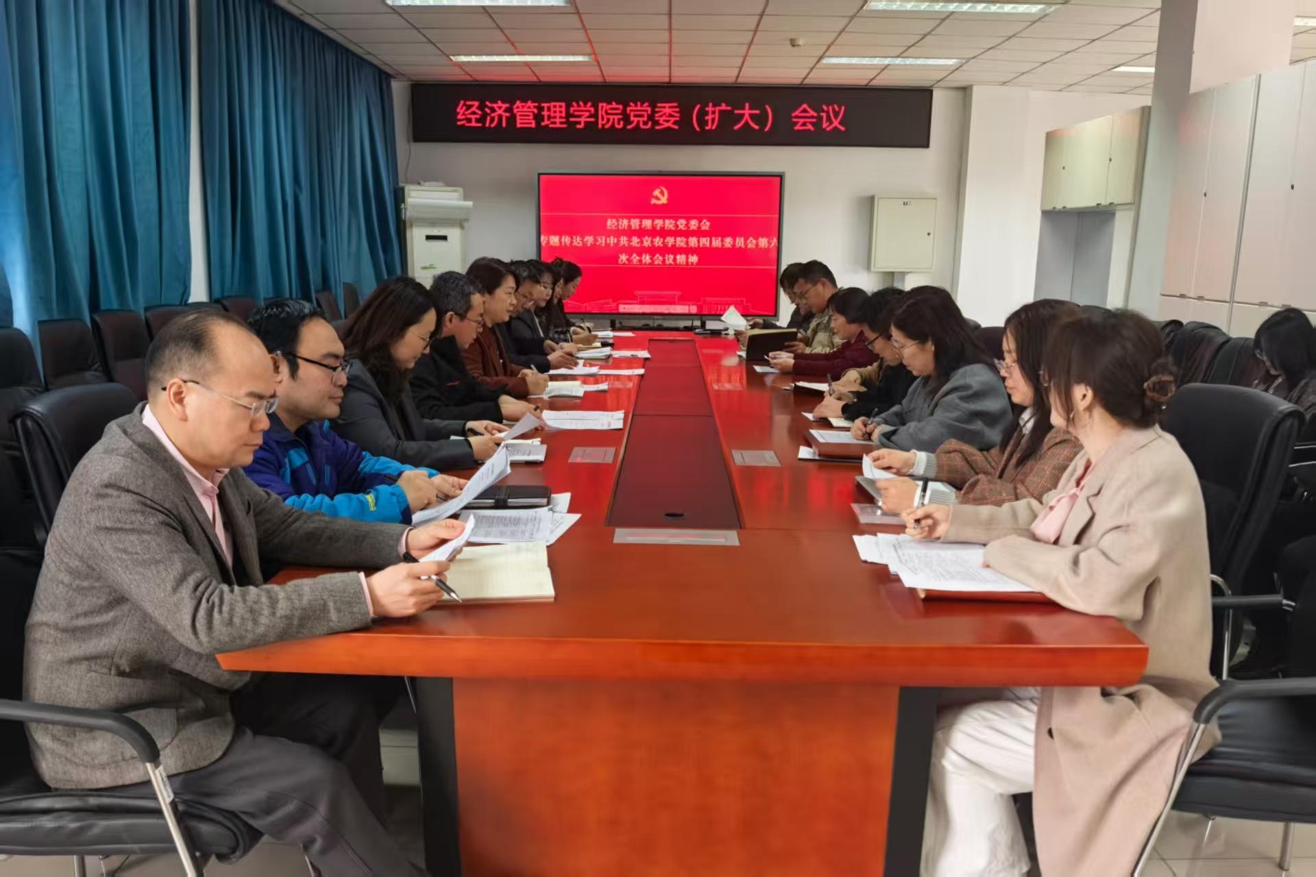 3月17日,經濟管理學院召開黨委(擴大)會議,專題傳達學習中共北京農學院第四屆委員會第六次全體會議精神,細化推進經管學院重點工作任務。學院領導班子成員、系(室)主任、系副主任、黨支部書記等參加會議。會議由學院黨委書記劉芳主持。
