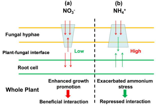 內容:介紹非損傷微測技術在根部內生真菌調控宿主對無機氮素形式適應性研究中的應用。在高NH4+條件下,共生真菌定殖根系表現出顯著增加的NH4+積累和外排,類似于NH4+水平升高引起的“銨毒”表型。真菌在與宿主根部相互作用過程中排出了NH4+,從而導致在高NH4+條件下植物-真菌界面處的NH4+水平增加。研究揭示了內生真菌楓香擬莖點霉通過影響根系-菌絲交界面NO3-/NH4+的離子動態(tài)調控宿主擬南芥對不同氮素形式的響應。