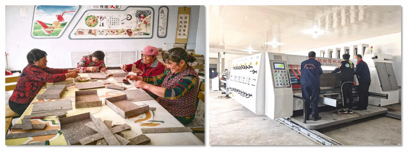 王景炫逐漸認識到鄉村對包裝設計的需求,萌生了助力白音特拉村檔案盒廠轉型升級的大膽想法。他對檔案盒簡單改造,設計出一個農產品包裝禮盒,在村民大會上進行了分享,也得到村民的認可,之后在多方推動下助力包裝盒廠成功轉型升級。王景炫結合內蒙地區特色,推導出不依托現有資源的發展模式,以實業帶動創收。目前該模式已經復制6鄉17村1家中央工廠,直接帶動就業100余名,村民增收4倍以上,協助村集體收入106.4萬元,居全縣第一。