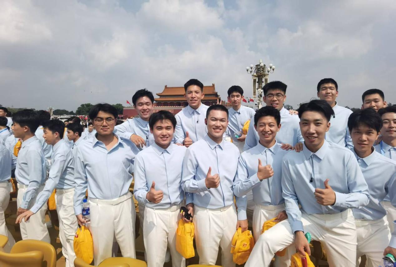張之凱是一名輔導員。2019年,還是大二學生的他,就以學生隊列教官的身份參與了慶祝新中國成立70周年群眾游行活動,肩負起14方陣17中隊的隊列訓練任務。那段日子,他與隊員們一同迎著仲夏熱浪、深夜出發(fā)、徹夜排練,在無數(shù)個揮汗如雨的日子里凝聚團隊力量。他們曾在瓢潑大雨中緊緊相擁、互相打氣,也曾在晨曦微涼的長安街上反復調整步伐、打磨細節(jié),最終以整齊劃一、斗志昂揚的姿態(tài)圓滿完成了天安門前的光榮展演。