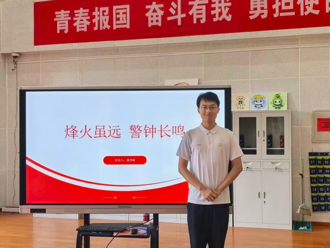 經(jīng)濟管理學院本科生謝帛峰是學校混聲合唱團團長。他在此次重大活動中主動承擔后勤保障工作,風雨無阻帶領同學接送搬運物資。他積極參與團日活動,以《烽火雖遠警鐘長鳴》為題,用“向前看!向前進!”激勵同學銘記歷史、奮發(fā)向前。“此次活動鍛煉了我的組織與表達能力,我將攜赤子之心,緊跟組織前進,繼續(xù)為學校、祖國貢獻自己的青春力量。”謝帛峰堅定地表示。