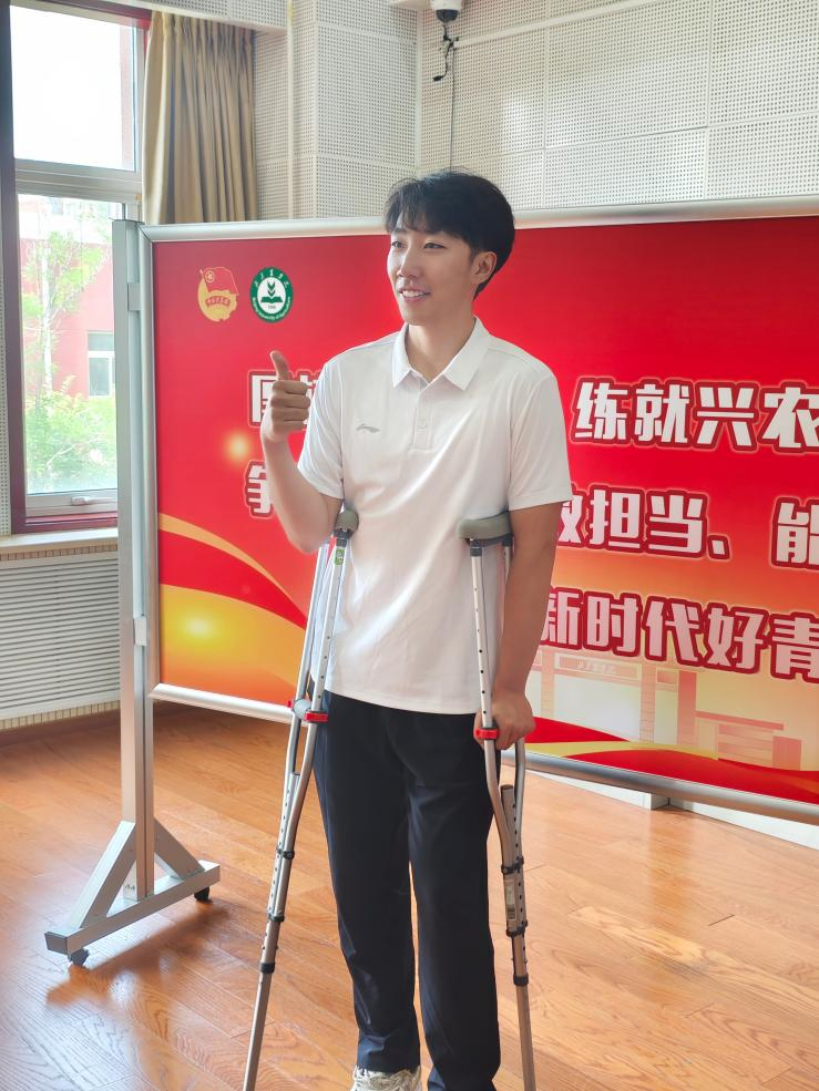 張博文訓練中不慎崴腳,即便醫(yī)生建議靜養(yǎng),他仍拄著拐杖準時到場。從基礎動作練習到全流程合排,他始終保持標準姿態(tài),拄拐上下車的身影成為訓練場的溫暖注腳。“排練是集體的事,我不能掉隊”,簡單話語里,是對集體榮譽的珍視。