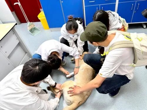 團隊連續兩年為全市在役導盲犬提供全面免費體檢。有位視障朋友緊緊握著團隊教師的手說:“太感謝了!有了這次體檢,我帶著狗狗出門才真的踏實。”