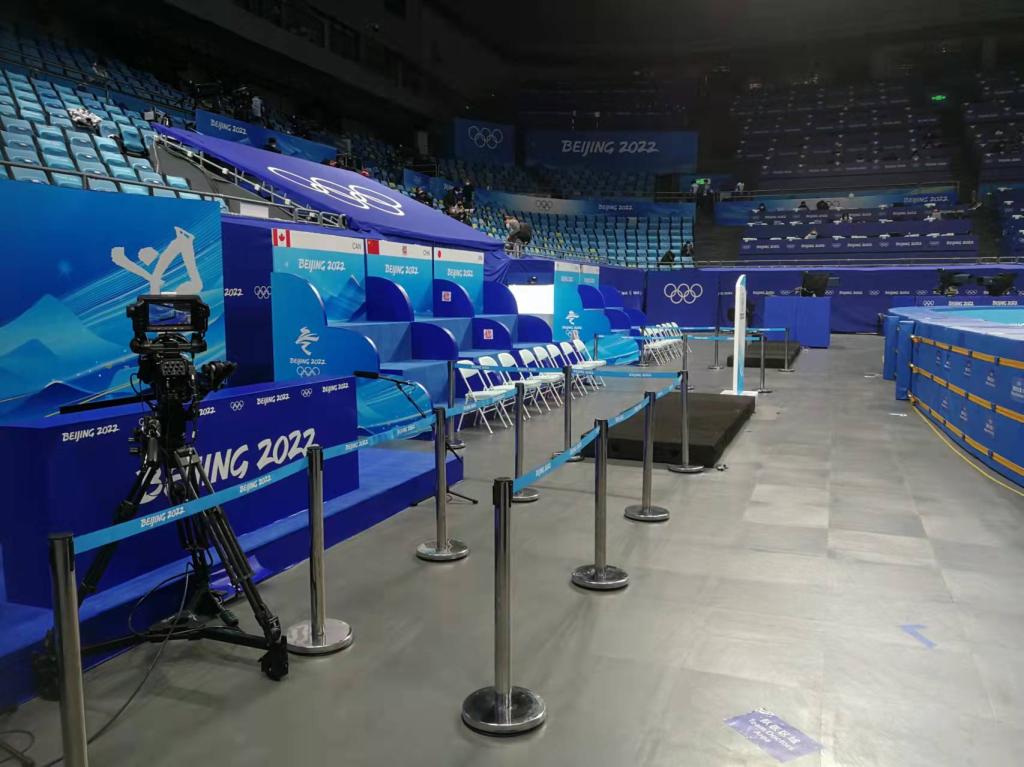 除了檢查防護墊,逯合江還負責短道速滑比賽場地和花樣滑冰比賽場地的轉換工作。冬奧會期間,花樣滑冰和短道速滑兩個項目比賽均在首都體育館內舉行,需要完成30次場地轉換?!拔覀冐撠焾龅剞D換時收回桌椅及時消毒,并以最快速度將裁判長、副裁判長、彎道管理員、內檢區、外檢區、發令區、記圈臺、運動員下冰區、冰車進場口等區域的桌椅和一米欄擺放好。”每次轉場涉及冰面、防護墊、景觀、攝影點位、轉播機位、計時計分、臨時設施等多個環節,需多個業務領域、約200人密切配合,在2小時內全部完成?!懊恳粓霰荣惐澈蠖加泻芏嗳嗽谀ぷ?,雖然每個人的力量有限,但團結協作的力量很強大?!卞趾辖湴恋卣f。