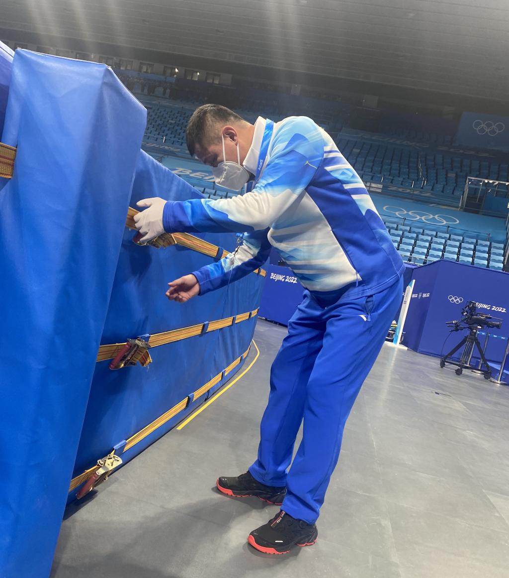 逯合江是短道速滑、速度滑冰國家一級裁判,多次參加國家級、北京市級滑冰比賽執裁工作,曾擔任2021年“相約北京”測試賽短道速滑裁判。他此次擔任北京冬奧會首都體育館短道速滑防護墊檢查員,主要工作就是和團隊同事一起,隨時檢查防護墊,守護短道速滑運動員的安全。