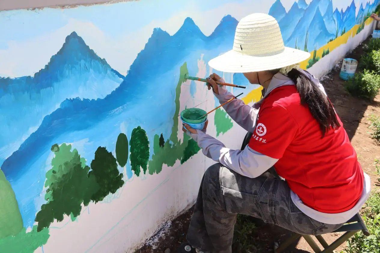 沒有樹蔭遮蔽的南墻,如同巨大的吸熱板,蒸騰的熱浪扭曲了眼前的空氣。汗水,成了每個人身上最慷慨的裝飾。酷熱考驗著體力,卻無法消磨他們對作品的極致追求和對主題的滿腔熱忱。這面在酷暑中誕生的墻繪,不僅是用顏料繪就的科普畫卷,更是“農功星火”團隊用堅韌意志和青春汗水澆筑的鄉村低碳宣言。