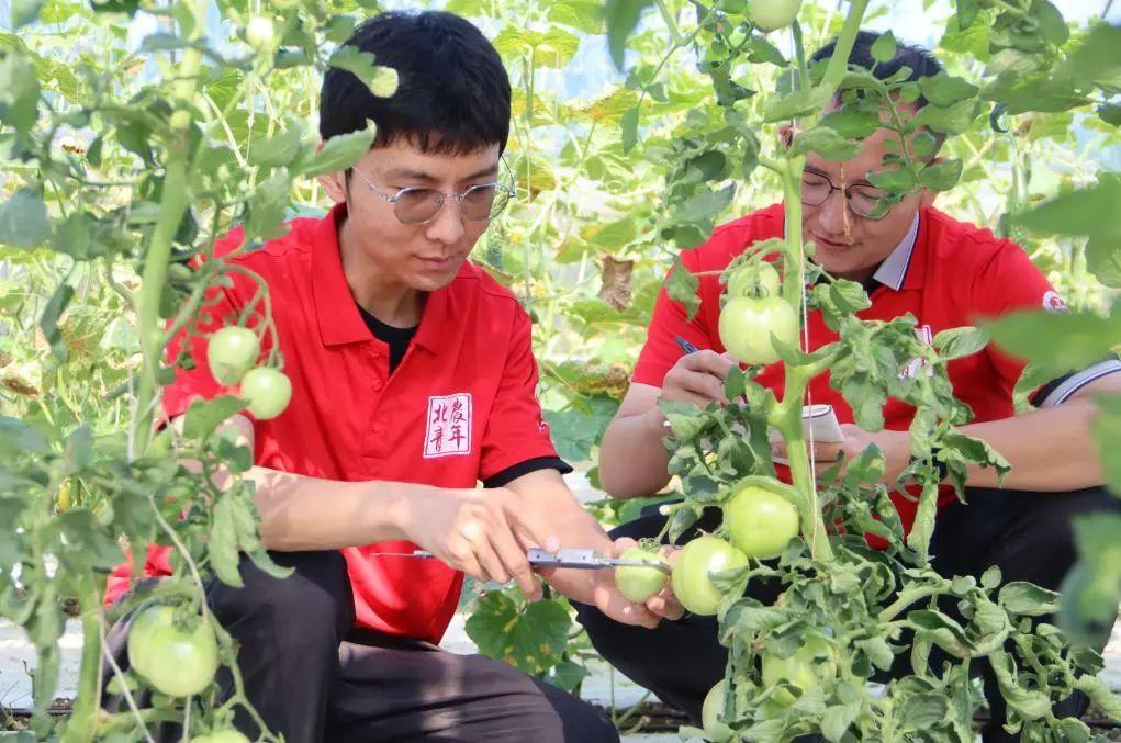 推開溫室大棚的門,熱浪裹挾著泥土與蔬果的清新氣息撲面而來。團隊成員穿著被汗水浸透的隊服,手持卷尺、游標卡尺、記錄本,化身田間科學家,穿梭在一壟壟長勢喜人的西紅柿和辣椒植株間。他們的目標明確:精確測量使用農林廢棄物堆肥生產出的基質所栽培作物的關鍵生長指標。張向杰同學正用游標卡尺仔細測量辣椒莖稈的地徑,“注意,卡尺要垂直,避免擠壓……好,地徑11.2毫米!”每一個微小的數據,都凝聚著他們對科學嚴謹性的追求。