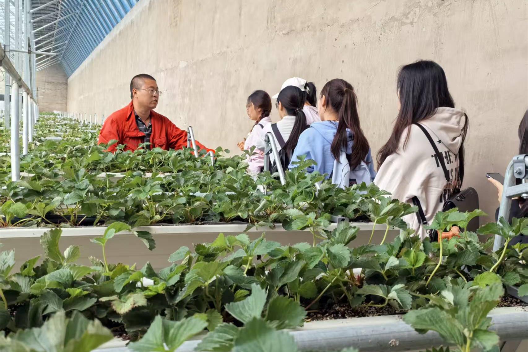 師生黨員深入草莓種植大棚和蔬菜溫室,實地考察智慧農業建設情況,并為當地農業轉型升級提供參考思路。御享生態農場創始人楊洋指出:“單純種地賣初級農產品的時代已經過去。我們要推動農業延伸產業鏈,開發果醬、甜品、文創等衍生品,提升附加值。我們要傳授的是與現代市場接軌的新方式新技術。”她鼓勵學生們要勇于突破傳統觀念,將所學專業知識與現代農業發展深度融合,助力農民從“會種地”向“慧種地”轉變。