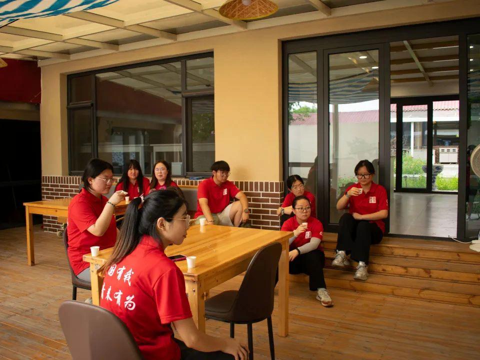 在魏曉峰老師的示范指導下,團隊師生分為四個小組分工協作,分別開展設計規劃、場地清理、材料準備等工作。隨后,師生們清理雜草、丈量尺寸、布置景觀,使基地的整體風貌煥然一新。工作間隙,大家還品鑒了當地的小麥啤酒,并給出了專業建議。