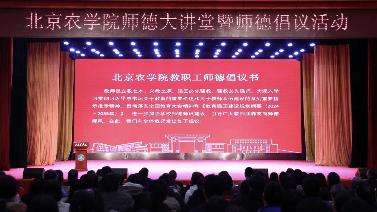 會上發布了《北京農學院教職工師德倡議書》,號召全體北農教職工堅定政治方向,自覺愛國守法;堅持言行雅正,涵養高尚師德;潛心教書育人,關心愛護學生;嚴守學術規范,培育優良教風;傳播優秀文化,積極奉獻社會。自覺弘揚教育家精神,涵養師者匠心,踐行崇高師德,做學生錘煉品格的引路人、做學生學習知識的引路人、做學生創新思維的引路人,做學生奉獻祖國的引路人,在教育強國建設中彰顯北農教師的使命與擔當。