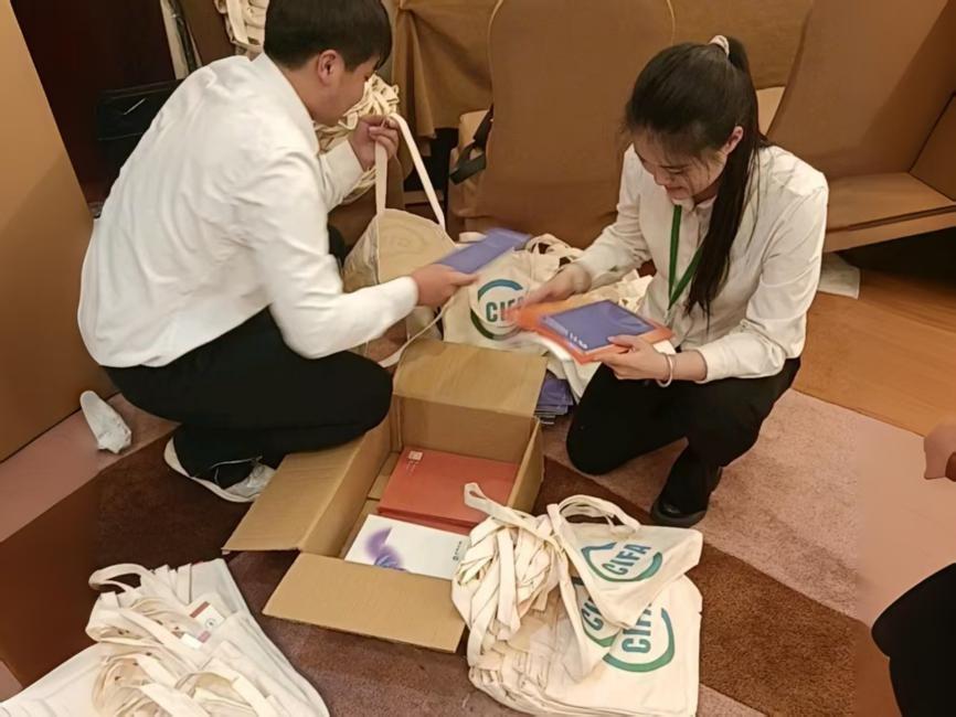 2025北京國際茶業展以“以茶結緣、相聚北京城,以誠會友、品飲世界茶”為主題,吸引400余家茶企參展,由中國茶葉流通協會、北京市西城區人民政府和泉州市人民政府聯合主辦。北京農學院國際學院的志愿者們在開展前就入駐展會,協助布展等工作。他們化身“搬運工”“布展師”,不辭勞苦、多次冒雨往返于庫房、展廳與票房之間。“雖然非常辛苦,但看著展廳從空空蕩蕩變得井然有序、展品從雜亂無章變得琳瑯滿目,心里就特別踏實。曾經總覺得‘奉獻’是個宏大的詞,現在才明白——把每箱展品搬穩擺好、每個數字校對核準,這些具體的小事,就是最實在的奉獻。”國際學院團委副書記程冠文同學說。