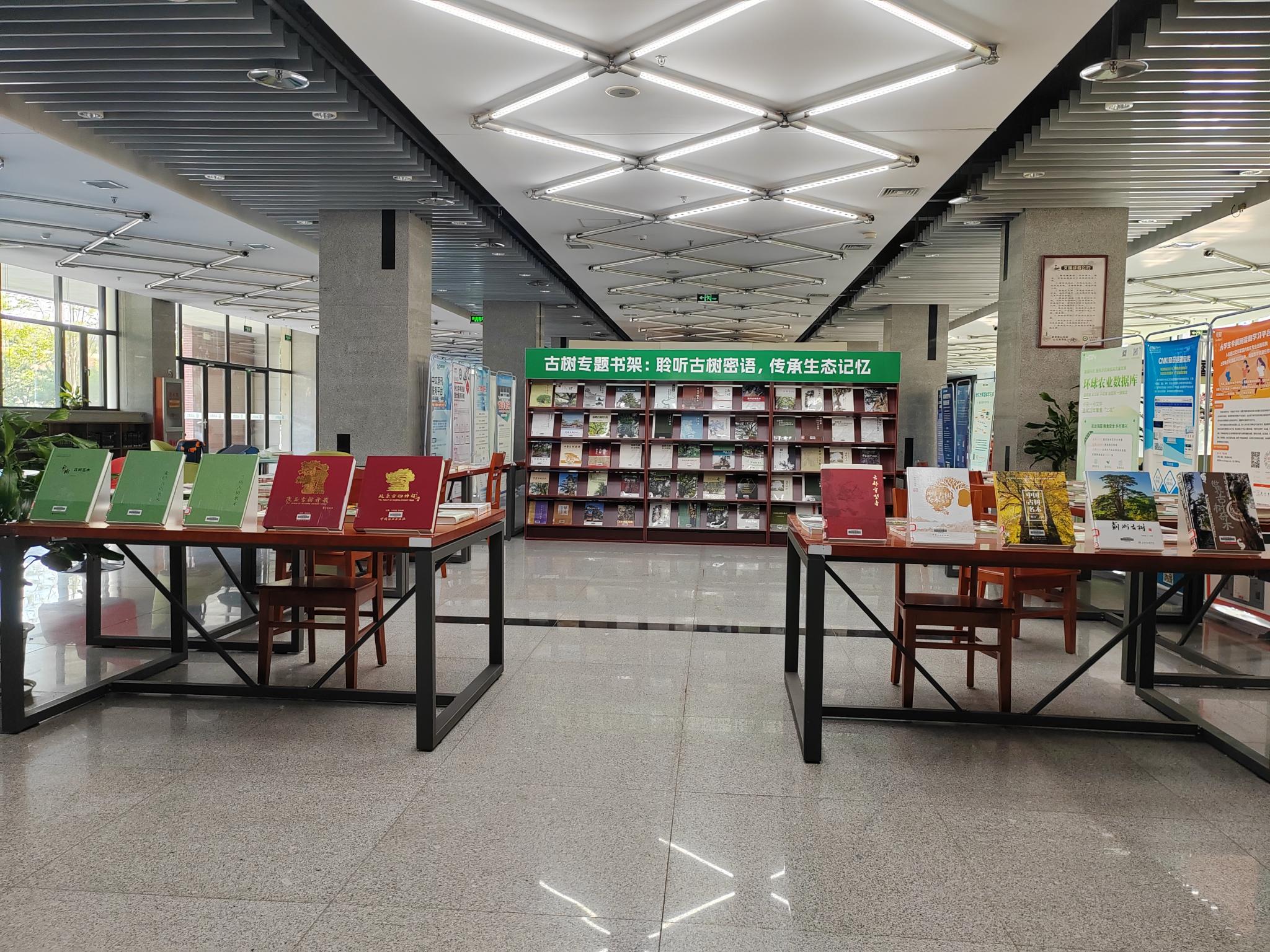 為配合 “樹木醫生” 微專業開班,4 月 28 日,圖書館精心策劃并打造古樹專題閱讀專區—— “聆聽古樹密語,傳承生態記憶” 。此次古樹閱讀展區設置在圖書館一層大廳,精選了《中國古樹名木》《世界古樹奇木》《古樹養護與復壯》《古樹復壯理論與實踐》等大量學術著作,全方位覆蓋古樹健康評估、病蟲害防治、復壯技術等知識領域。師生們漫步書展間,不僅能汲取古樹研究與保護的專業知識,更能透過文字感悟古樹承載的歷史文化與生態記憶,在書香中開啟一場與古樹的深度對話。