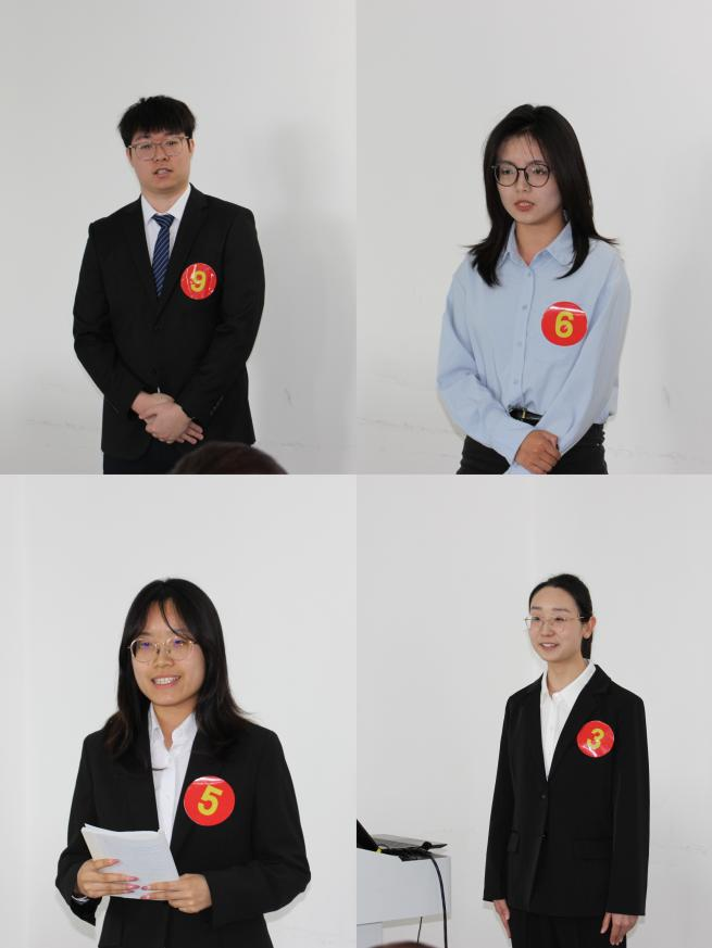 個(gè)人展示環(huán)節(jié),十位選手分別從專業(yè)背景、實(shí)踐經(jīng)歷、個(gè)人優(yōu)勢以及職業(yè)規(guī)劃等方面作自我介紹,評委老師針對陳述內(nèi)容現(xiàn)場提問,考察選手的應(yīng)變能力與專業(yè)素養(yǎng)。