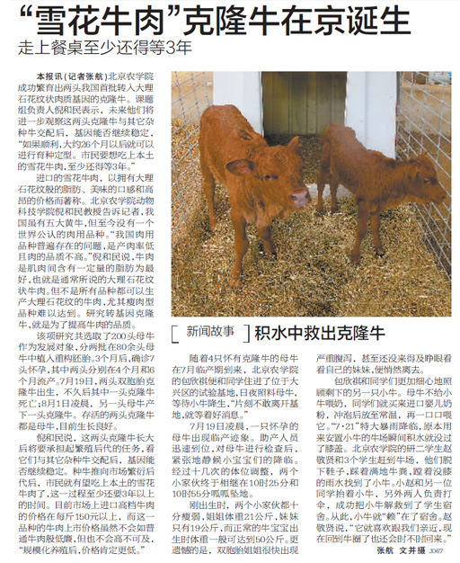 “雪花牛肉”克隆牛在京誕生