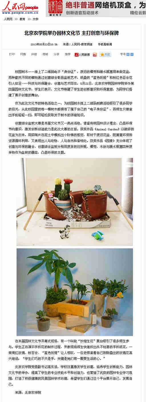 北京農學院舉辦園林文化節 主打創意與環保牌