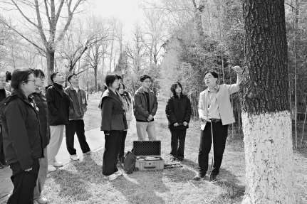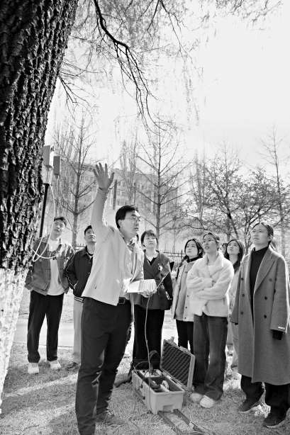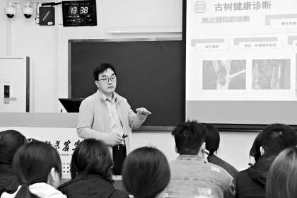 “每上一節理論課,后面就要緊跟著實踐練習。比如,我會教大家樹木健康診療知識。隨后,學生們就要前往校園或者校外的公園里開展實踐,選一棵樹,通過測樹高、冠幅等,為樹木開具‘體檢’報告單。”崔金騰說,課程結尾還會開展一次綜合性實習,考查學生整體運用所學知識處理樹木健康問題的能力。