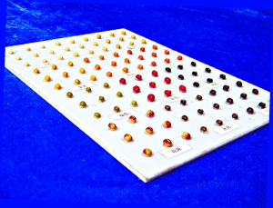 在另一塊色板上,僅紅色又細(xì)分為超淺紅、淺紅、鮮紅、中紅、中深紅、深紅6種。