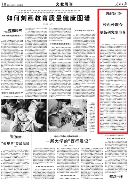 【人民日報】校內外聯合 創新研究生培養(憑欄處)