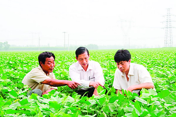 金文林(中)在為農民解答紅小豆種植方面的問題。