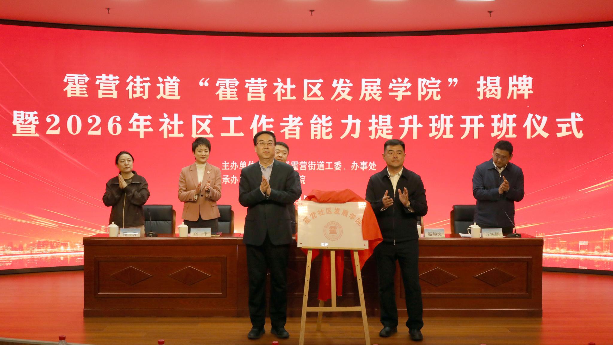 為進一步深化校地合作、加強基層治理人才隊伍建設,3月25日,霍營街道“霍營社區發展學院”揭牌暨2026年社區工作者能力提升班開班儀式在北京農學院圖書館報告廳主會場及轄區內20個社區線上分會場同步舉辦。