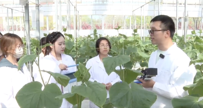 在北京農學院植物科學技術學院教師的帶領下,鏡頭來到學校的智能聯動溫室,據悉,這是北京農學院非常值得“打卡”的點位。溫室內滿眼綠色,棚架上栽培了生菜、芹菜、黃瓜、西紅柿,還有金橘、檸檬、無花果等等。