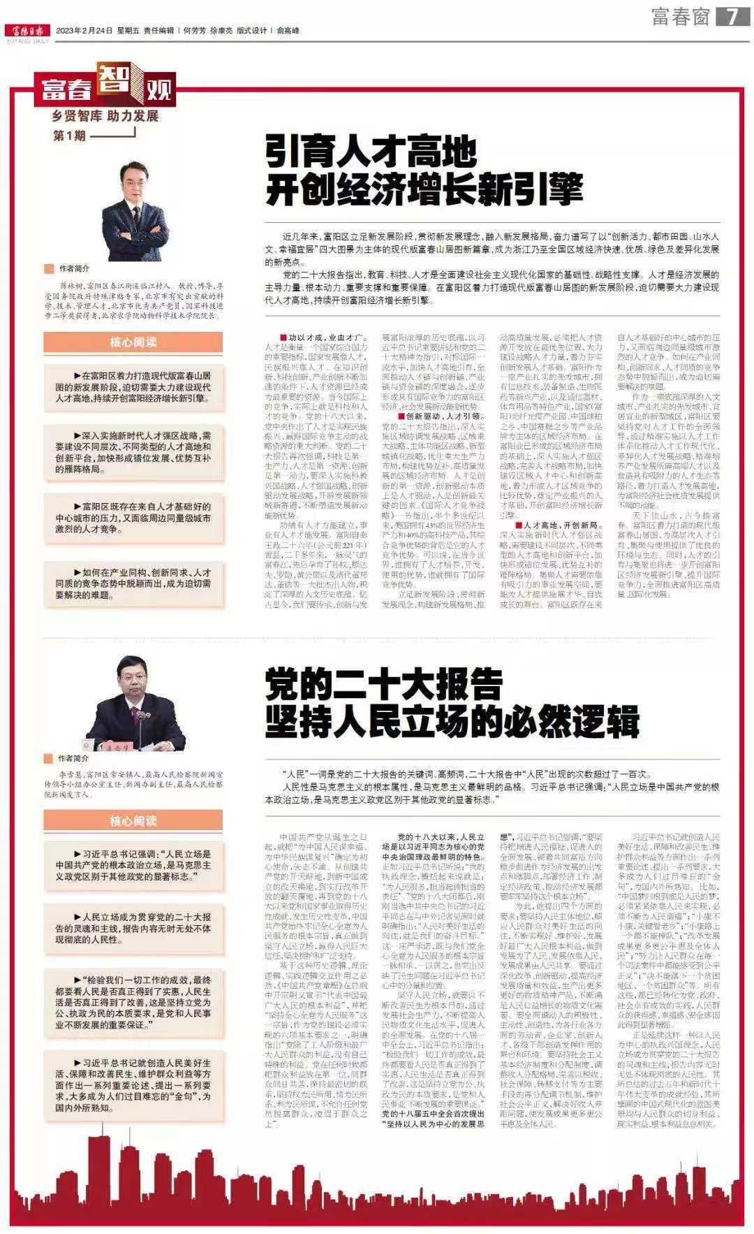 為此,本報(bào)“富春窗”版面開辟“富春智觀”欄目,在這一方寸地不定期發(fā)表鄉(xiāng)賢的精辟言論、前沿研究。