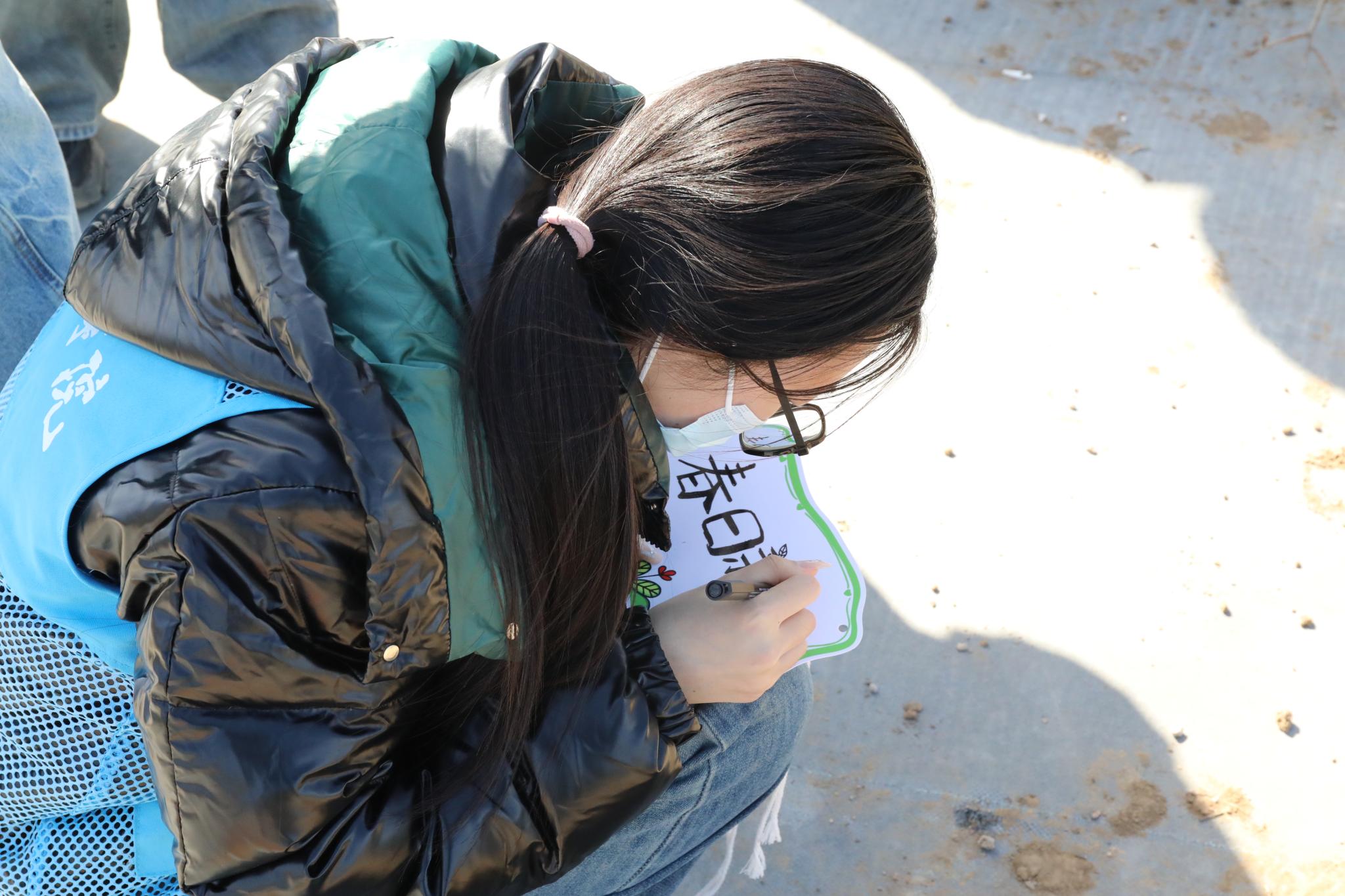2024級生物育種1班的尹智燁同學表示:“作為農科學子,我們不僅是在種樹,更是在實踐中檢驗課堂所學的專業知識。”種植完成后,大家在每棵小樹旁插上了親手制作的樹牌,紛紛寫下“綠水青山就是金山銀山”“愿此樹常青,共繪校園新綠”等。“今天種下的不僅是樹苗,更是我對未來的承諾。待到蘋果成熟的時節,我的支農扶農夢想也一定會開花結果。”一名同學指著剛掛上的樹牌說道。